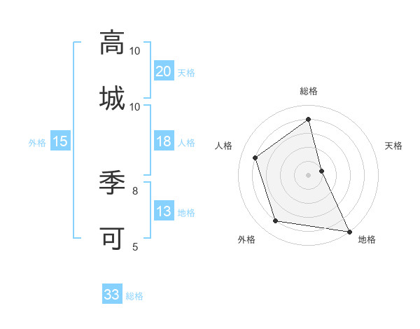 高城 季可さんの天格は20画の1点!