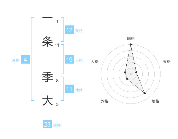一条 季大さんの総格は23画の5点!