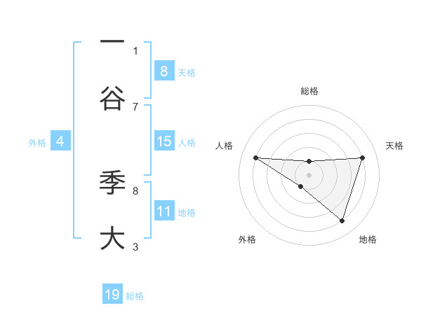 家系が持つ宿命的な運勢を表します。祖先から受け継いだ苗字ですので自分の力が及びません。家柄を象徴します。