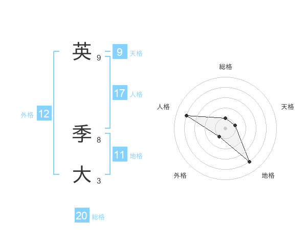 英 季大さんの総格は20画の1点!