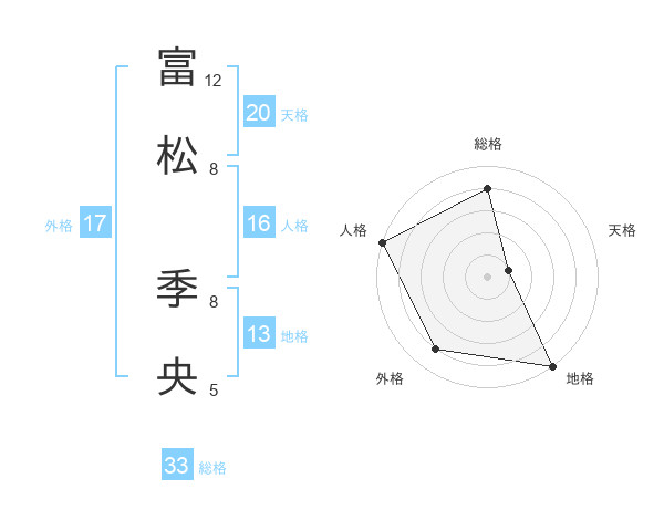 富松 季央さんの総格は33画の4点!