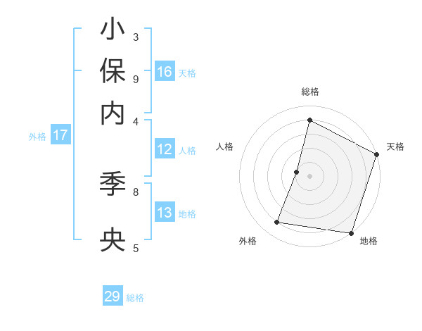 小保内 季央さんの総格は29画の4点!