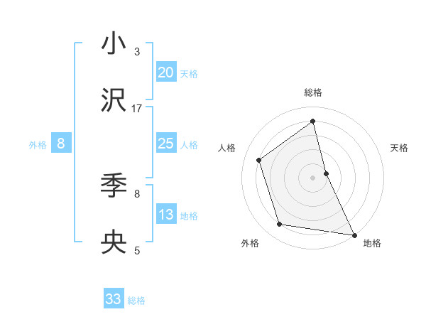 小沢 季央さんの総格は33画の4点!