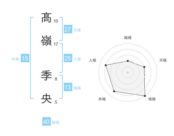 髙嶺 季央さんの総格は40画の2点!
