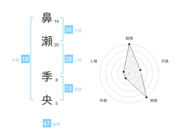 鼻瀬 季央さんを姓名の画数から五運を鑑定