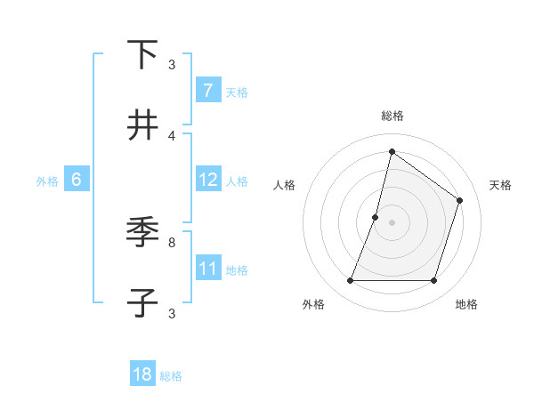 下井 季子さんの総格は18画の4点!