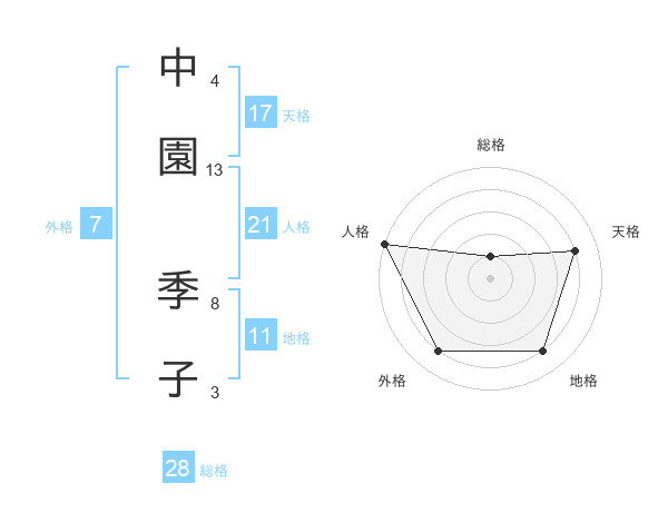 中園 季子さんの人格は21画の5点!