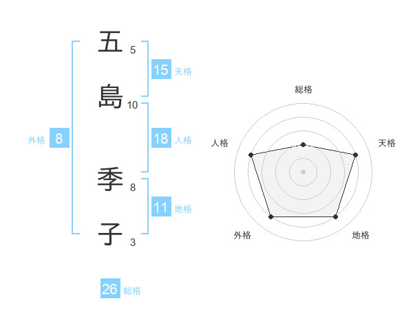 五島 季子さんの総格は26画の2点!