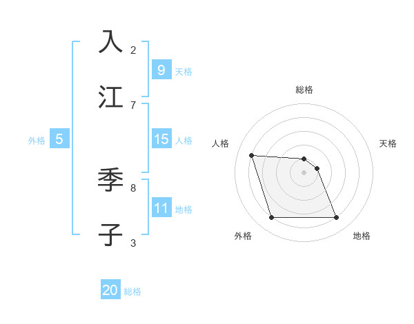 入江 季子さんの総格は20画の1点!