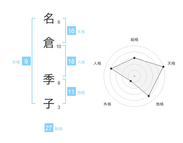 名倉 季子さんの総格は27画の3点!