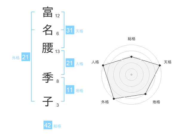 富名腰 季子さんの天格は31画の5点!