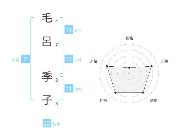 毛呂 季子さんの総格は22画の1点!