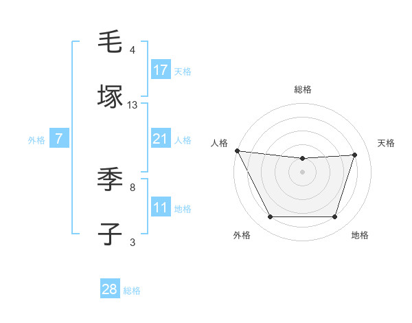 毛塚 季子さんの人格は21画の5点!