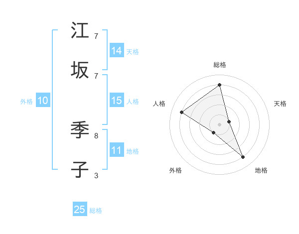 江坂 季子さんの総格は25画の4点!