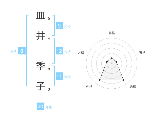 皿井 季子さんの外格は8画の4点!
