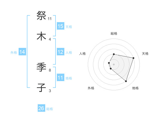 祭木 季子さんの総格は26画の2点!