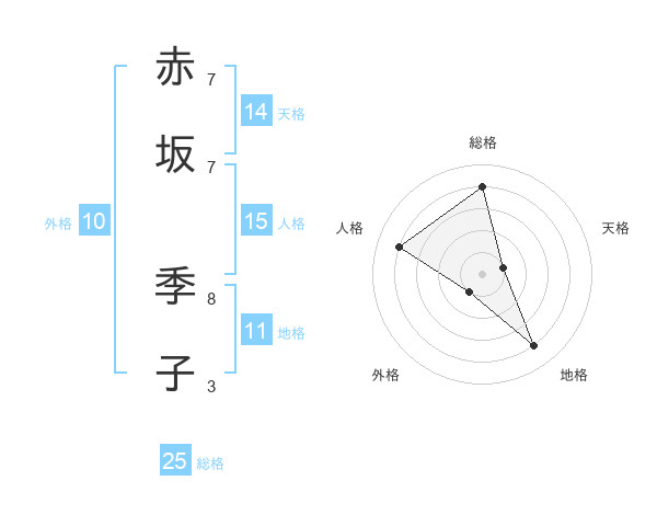 赤坂 季子さんの総格は25画の4点!