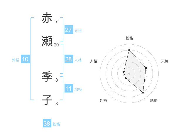 赤瀬 季子さんの総格は38画の4点!