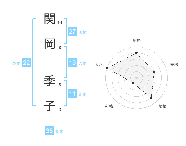 関岡 季子さんの総格は38画の4点!
