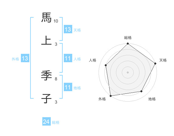 馬上 季子さんの外格は13画の5点!
