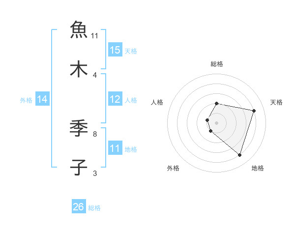 魚木 季子さんの天格は15画の4点!