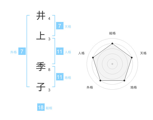 井上 季子さんの地格は11画の4点!