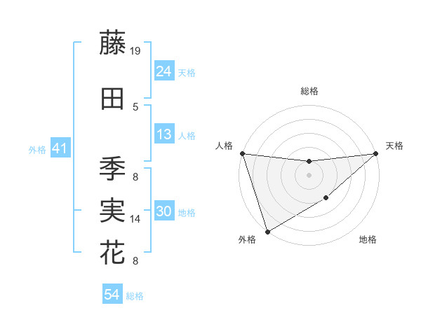 藤田 季実花さんを姓名の画数から五運を鑑定
