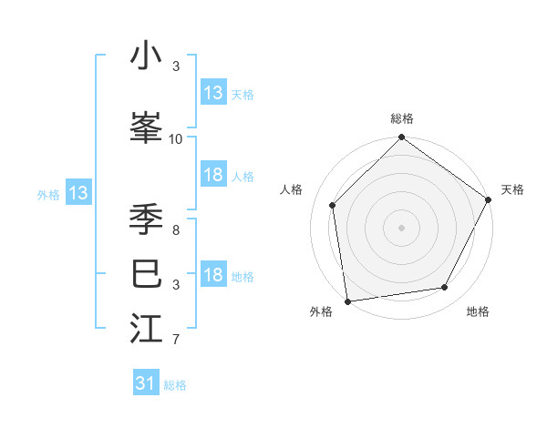 小峯 季巳江さんの天格は13画の5点!
