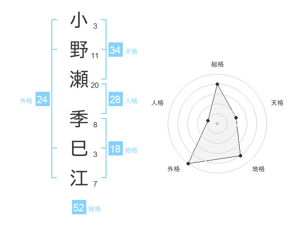 小野瀬 季巳江さんを姓名の画数から五運を鑑定