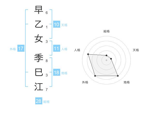 早乙女 季巳江さんを姓名の画数から五運を鑑定