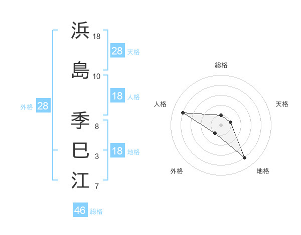 浜島 季巳江さんを姓名の画数から五運を鑑定