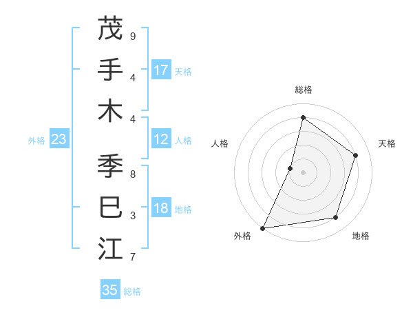 茂手木 季巳江さんの総格は35画の4点!