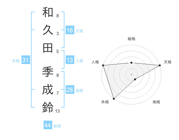 和久田 季成鈴さんの外格は31画の5点!