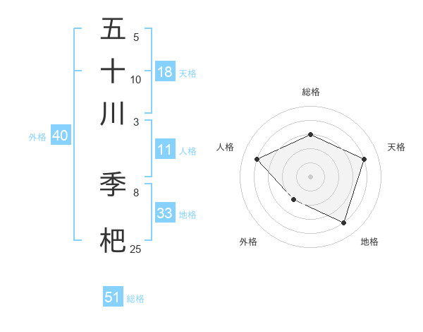 五十川 季杷さんを姓名の画数から五運を鑑定