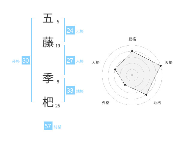 五藤 季杷さんを姓名の画数から五運を鑑定