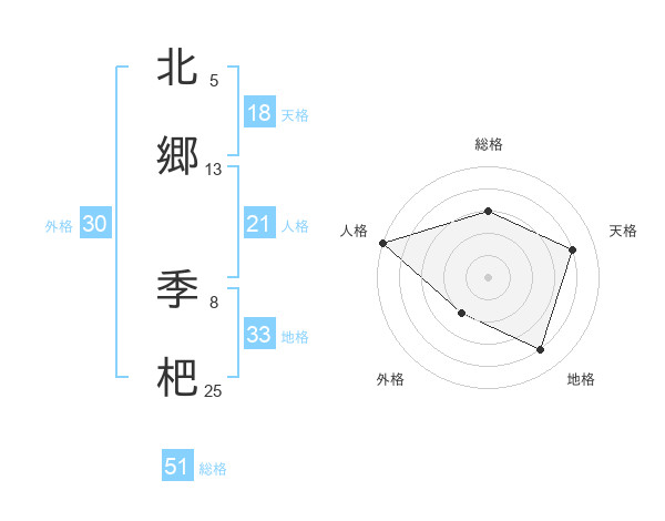 北郷 季杷さんを姓名の画数から五運を鑑定
