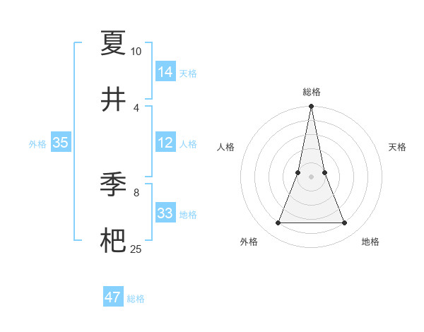 夏井 季杷さんの総格は47画の5点!