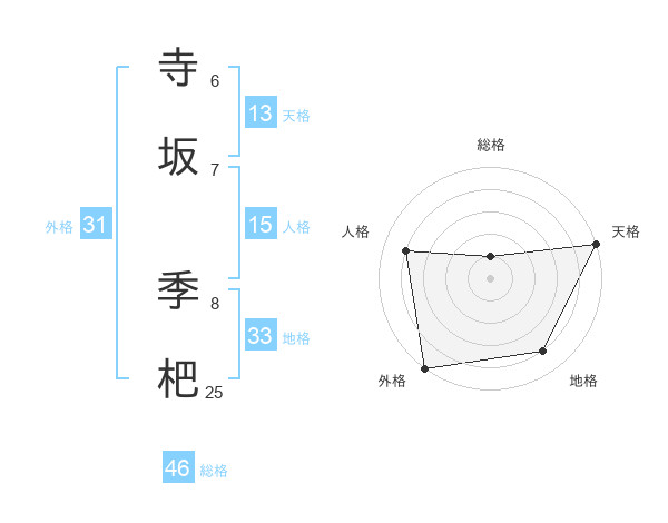 寺坂 季杷さんの天格は13画の5点!
