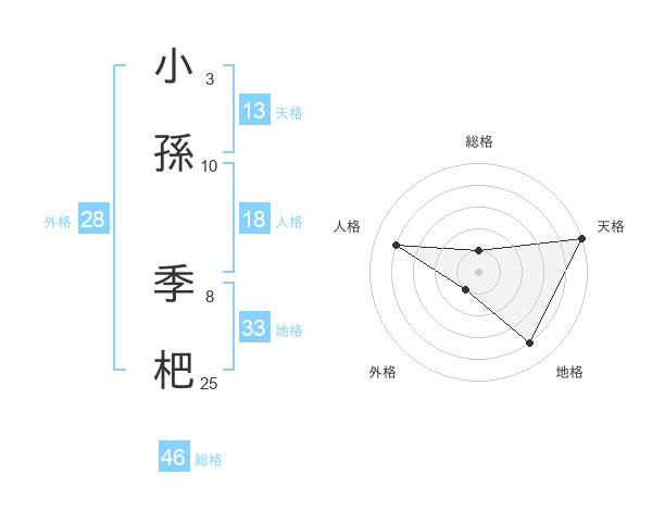 小孫 季杷さんの天格は13画の5点!