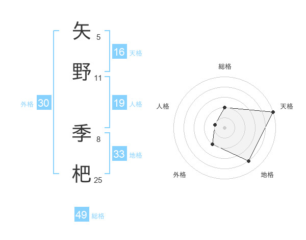 矢野 季杷さんを姓名の画数から五運を鑑定