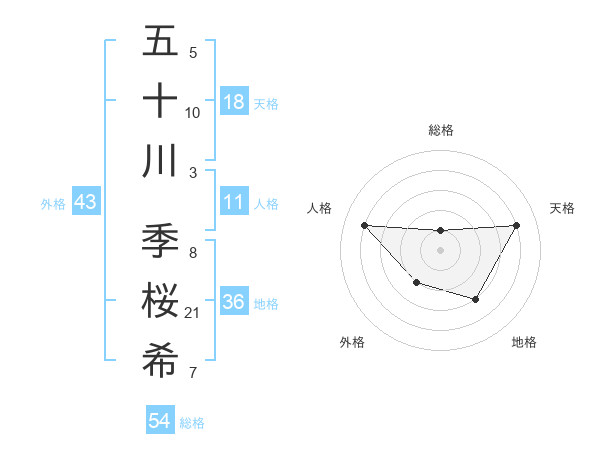 五十川 季桜希さんを姓名の画数から五運を鑑定