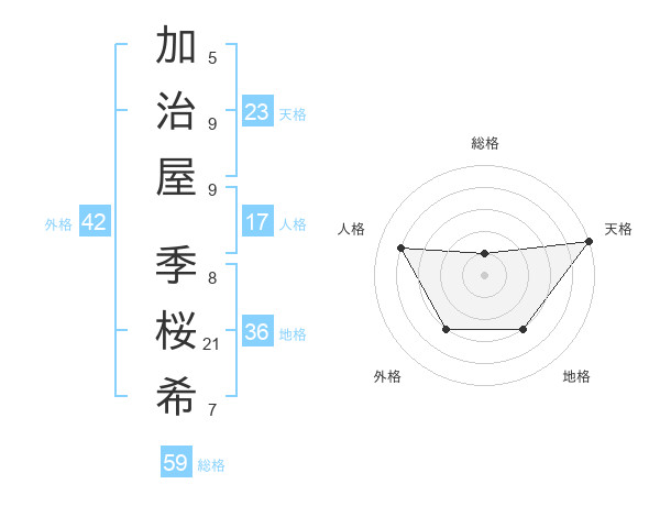 加治屋 季桜希さんの天格は23画の5点