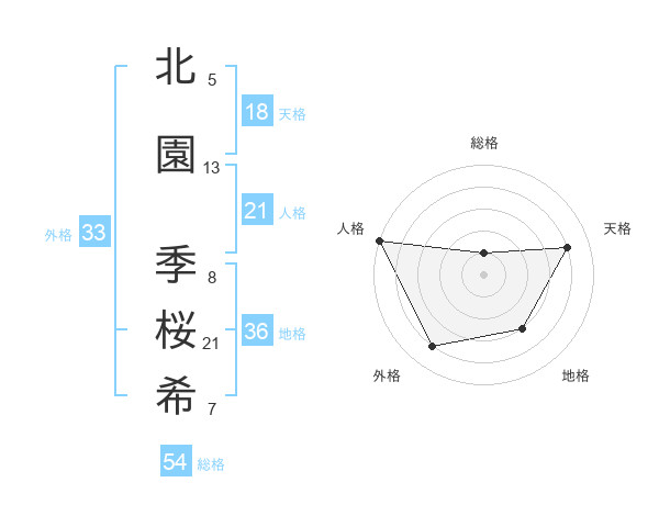 北園 季桜希さんを姓名の画数から五運を鑑定