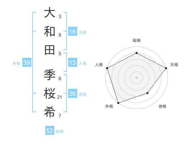 大和田 季桜希さんを姓名の画数から五運を鑑定