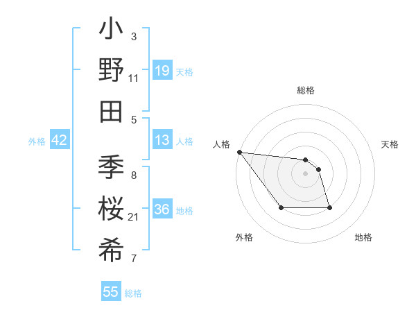 小野田 季桜希さんを姓名の画数から五運を鑑定