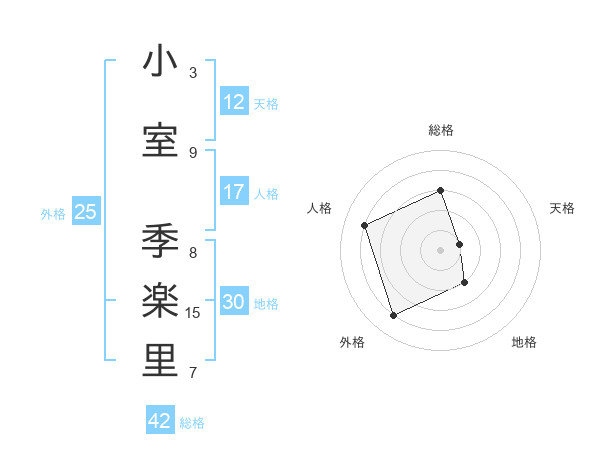 小室 季楽里さんを姓名の画数から五運を鑑定