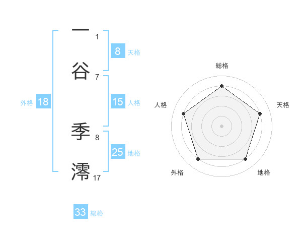一谷 季澪さんを姓名の画数から五運を鑑定