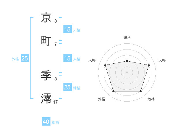 京町 季澪さんの総格は40画の2点!