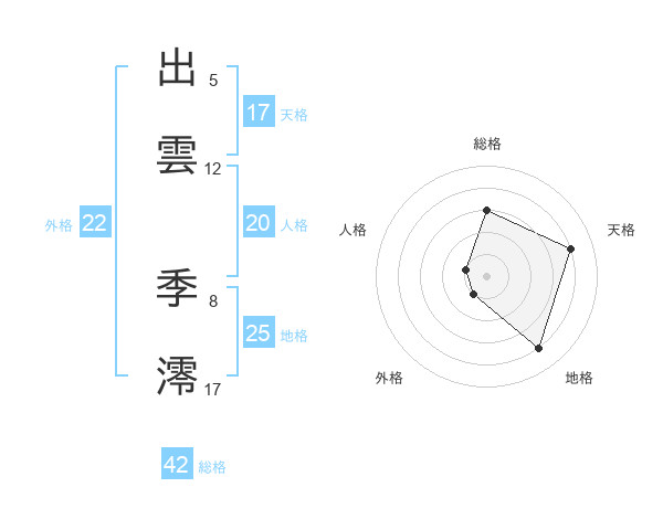 出雲 季澪さんの外格は22画の1点!
