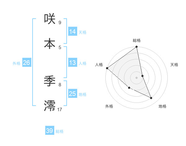 咲本 季澪さんの総格は39画の5点!